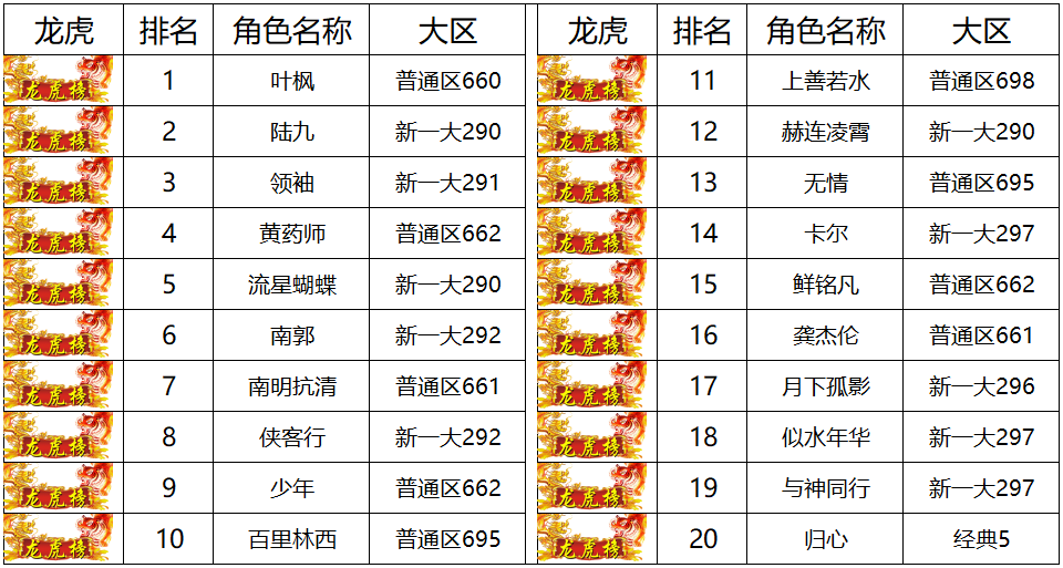 龙虎一大区排行榜