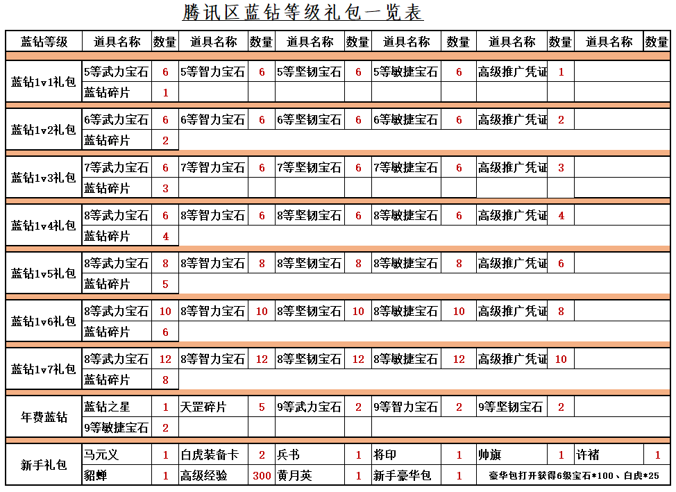 腾讯区年费蓝钻每月可领取年费礼包一次,蓝钻等级礼包一次,每个人新手礼包只能领取